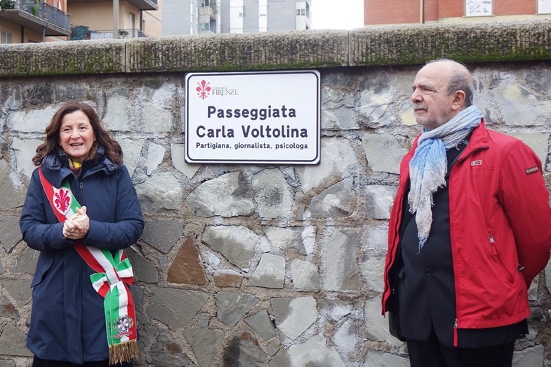 Era quella “bella ragazza mora” che aveva affascinato Sandro Pertini, la staffetta partigiana che incontrò a Milano, nel 1944 alla Bocconi, e che divenne sua moglie. A Carla Voltolina Pertini è stata intitolata una passeggiata di Firenze, quella che unisce via Baracca con via di Novoli. L'inaugurazione, questa mattina, con la vicesindaca e assessora alla toponomastica Cristina Giachi, Umberto Voltolina, fratello di Carla, i rappresentanti della Fondazione Sandro Pertini, il professor Valdo Spini e Paola Malacarne, responsabile dell' 'Associazione toponomastica femminile' per la provincia di Firenze e Prato