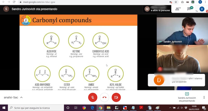 Agli ordini del professor Sandro Jurinovich si è svolta la sperimentazione, iniziativa seguita dal vice preside del Cattaneo Roberto Finocchi. I ragazzi si sono connessi al proprio pc o smartphone e hanno approfondito i dettami della chimica in camera o in salotto.