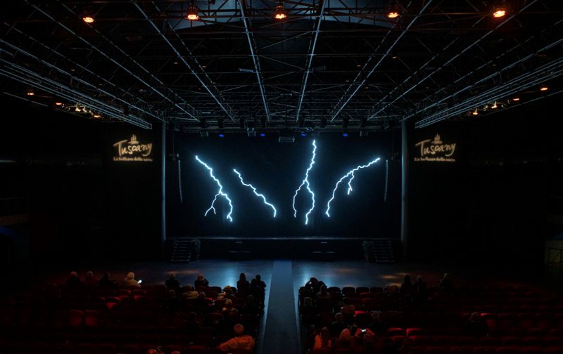 “Una presenza viva e dirompente. Il primo sipario al mondo digitale, un grande tessuto ricamato con led luminosi, vivo, dinamico”. Fabrizio Plessi spiega così il percorso creativo che lo ha portato a realizzare “Energy”, il nuovo “Sipario d’artista” del teatro Tuscany Hall di Firenze.