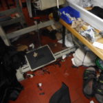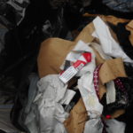I sacchi neri accumulati all’ingresso del laboratorio contenevano ritagli di tessuto mescolati a rifiuti domestici come: bicchieri e bottiglie di plastica, lattine e contenitori di bevande ed alimenti, resti di cibi, mozziconi di sigaretta. Depositato alla rinfusa su una rampa di scale si trovava anche un ammasso di capi in tessuto non ancora finiti.