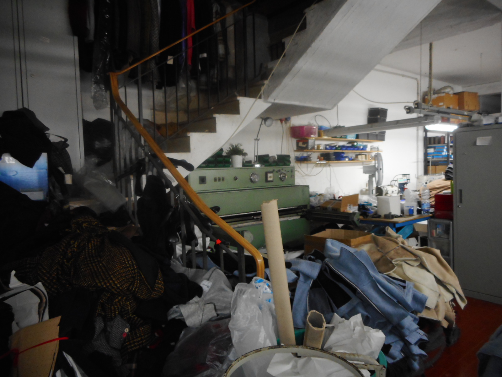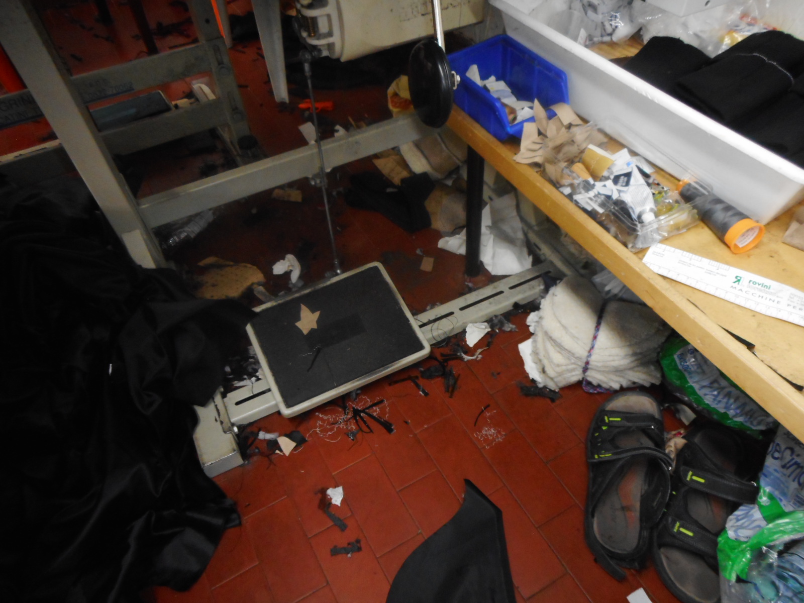 Al momento del sopralluogo il laboratorio posto al piano terra era inattivo e in uno stato di totale confusione e sporcizia sul pavimento e sotto i macchinari.