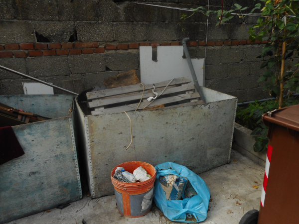 - materiali edili, un’autovettura fuori uso, un vecchio televisore, una plafoniera, alcune macchine da cucire e assi da stiro non funzionanti o in disuso, un contenitore con cibi e alimenti in stato di decomposizione, due reti da letto.
