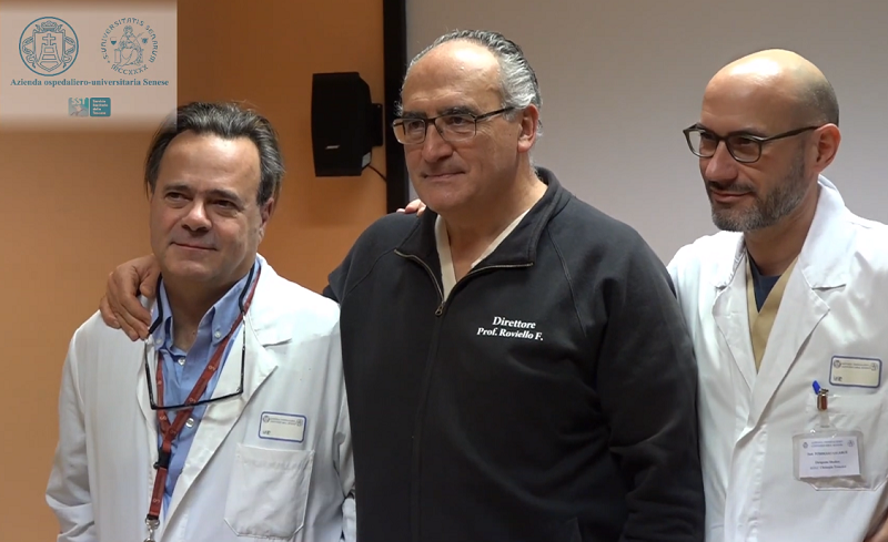 In particolare, il paziente è stato preso prima in carico dal professor Franco Roviello, direttore della UOC Chirurgia generale a indirizzo oncologico, che ha identificato la causa dell’emorragia in atto e, contestualmente, sono stati allertati i colleghi del Dipartimento Cardio-Toraco-Vascolare: sono intervenuti il dottor Tommaso Ligabue, della UOC Chirurgia Toracica diretta dal professor Piero Paladini, e il professor Eugenio Neri, responsabile della UOSA Chirurgia dei Grossi vasi. È stato quindi deciso rapidamente di procedere per suturare e riparare la vena cava, che era causa della emorragia interna, salvando così la vita al paziente.
