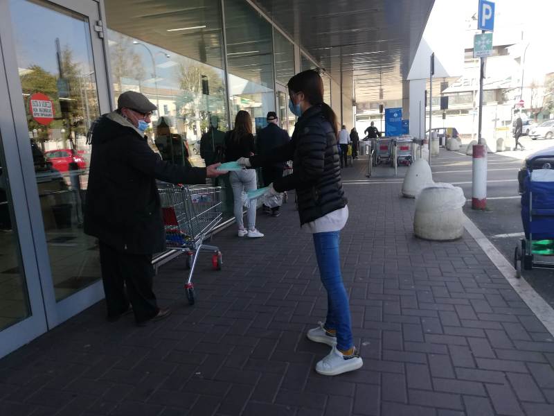 Mascherine ai clienti Coop in fila a Campi Bisenzio