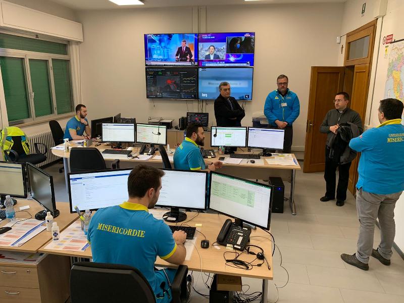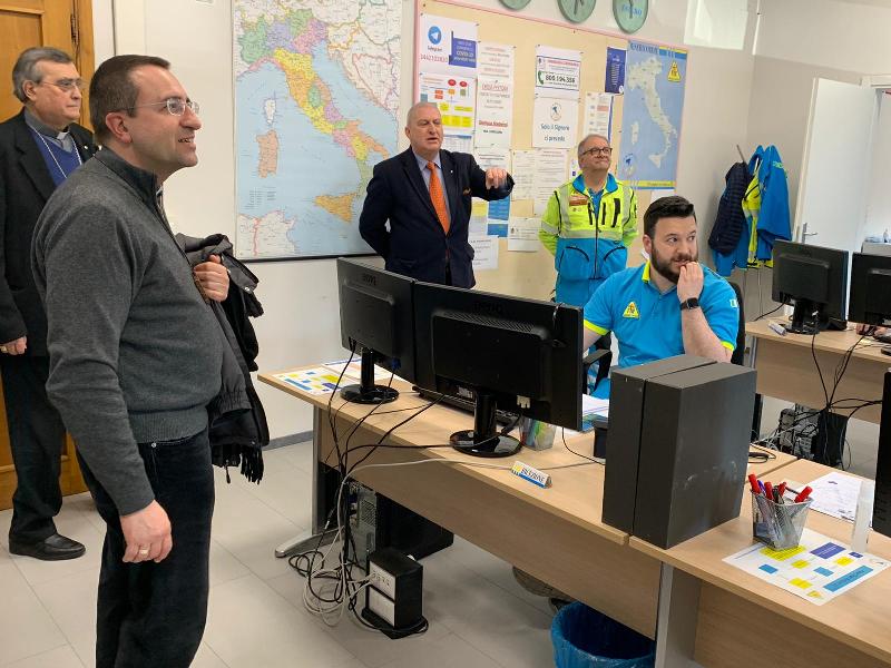 “Complimenti per il dono che voi siete per la terra toscana e per quello che state facendo.” Sono le parole di grande incoraggiamento che monsignor Andrea Migliavacca, delegato della Conferenza Episcopale Toscana per la pastorale della salute e vescovo di San Miniato (PI), ha rivolto alle Misericordie della Toscana, visitando, la sala operativa regionale di Pistoia, accompagnato da monsignor Franco Agostinelli, correttore nazionale delle Misericordie e don Simone Imperiosi, correttore delle Misericordie toscane. Ad accoglierli c’erano il presidente delle Misericordie della Toscana e delegato nazionale Area Emergenze delle Misericordie, Alberto Corsinovi e il Direttore delle Misericordie toscane e nazionali Gianluca Staderini.