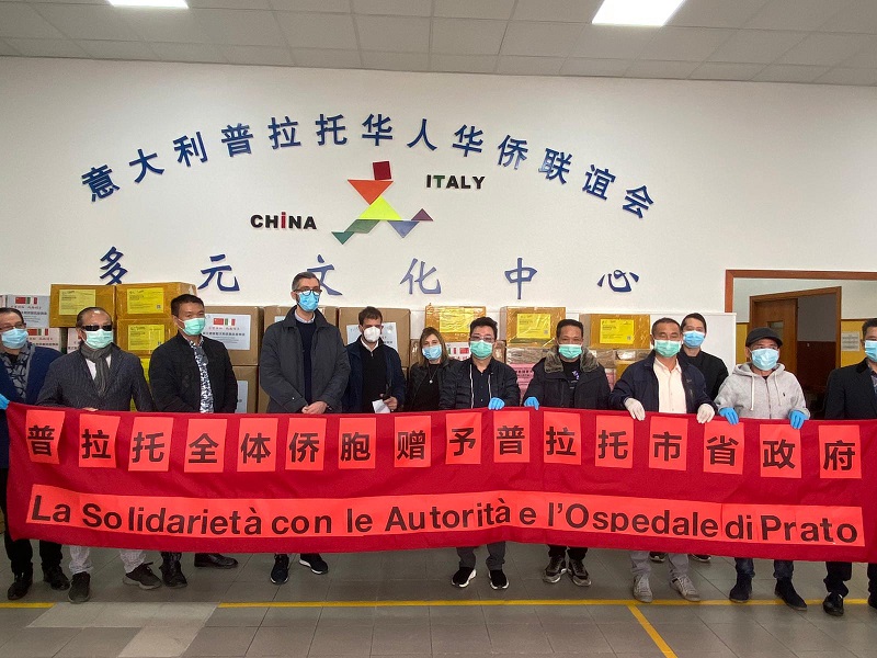 Sedicimila mascherine chirurgiche, 1000 mascherine con filtro FFP2, 1620 mascherine N95, 500 tute, 384 protezioni per gli occhi e 11mila guanti monouso. È il materiale donato dal governo di Whengzou, arrivato a Prato tramite le associazioni cinesi e che sarà distribuito tra i Comuni dell'area pratese, la Misericordia, le associazioni di volontariato e l'ospedale Santo Stefano.