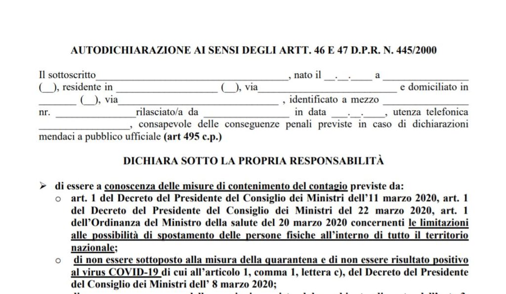Dopo il nuovo decreto cooronavirus, il modulo per l'autocertificazione dei cittadini che intendono fare spostamenti cambia nuovamente. Lo prevede una circolare inviata ai prefetti dal capo della Polizia, Franco Gabrielli, alla luce del nuovo decreto del presidente del Consiglio pubblicato oggi in Gazzetta Ufficiale e contenente ulteriori misure contro la diffusione del Coronavirus.