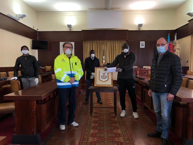 Questa mattina il Sindaco di Santa Croce sull'Arno Giulia Deidda ha ricevuto, nel rispetto delle norme di sicurezza per prevenire contagi di Covid-19, i rappresentanti della Associazione senegalese Cossan di Santa Croce sull’Arno, il Presidente della Pubblica Assistenza Marco Remorini e il Presidente della Misericordia Alessandro Marconcini, per la consegna da parte della comunità senegalese di un contributo di mille euro per fronteggiare l'emergenza, da destinarsi alle realtà della Protezione Civile, che è l'organo operativo dell'Amministrazione comunale ed è impegnata nell'assistenza alla popolazione e in operazioni straordinarie come quelle di sanificazione del territorio.