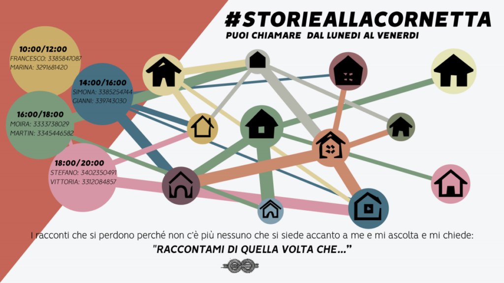 In questo passaggio così delicato per tutti noi, vogliamo provare ad offrire questa disponibilità all’ascolto per tutte le persone della nostra comunità, le più anziane, che vivono in una situazione di maggiore isolamento, attraverso un servizio volontario attivato da una semplice telefonata, in cui chiedere “Ciao, come stai? Raccontami una storia, la tua…”.