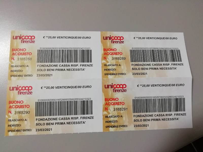 Le famiglie sono state selezionate nei comuni di Firenze, Scandicci e Campi Bisenzio per avere un sostegno finalizzato alle carriere scolastiche dei propri figli e si trovano come tutte le altre a fronteggiare lo stop obbligato dall’emergenza sanitaria. Lo scopo del buono spesa è proprio quello di farsì che la sospensione non sia ancor più penalizzante per chi già vive una condizione di fragilità e sofferenza. I buoni spesa potranno essere utilizzati per l’acquisto di beni di prima necessità in tutta la rete toscana di Unicoop, grazie alla pronta attivazione di Unicoop Firenze nella loro emissione. La distribuzione seguirà uno stringente protocollo di sicurezza rispetto al possibile contagio del virus.
