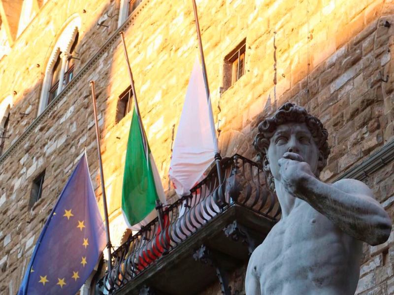 Il tricolore in segno di lutto per le vittime del coronavirus, di vicinanza ai familiari delle vittime, di partecipazione nazionale al cordoglio delle comunità più colpite. Il sindaco di Firenze Dario Nardella (come tutti i primi cittadini della Penisola), con indosso la fascia tricolore, ha osservato davanti a Palazzo Vecchio un minuto di silenzio e con le bandiere esposte a mezz’asta in segno di lutto e di solidarietà per ricordare le vittime del coronavirus, per onorare il sacrificio e l’impegno degli operatori sanitari, per abbracciarci idealmente tutti, per essere di sostegno l’uno all’altro.