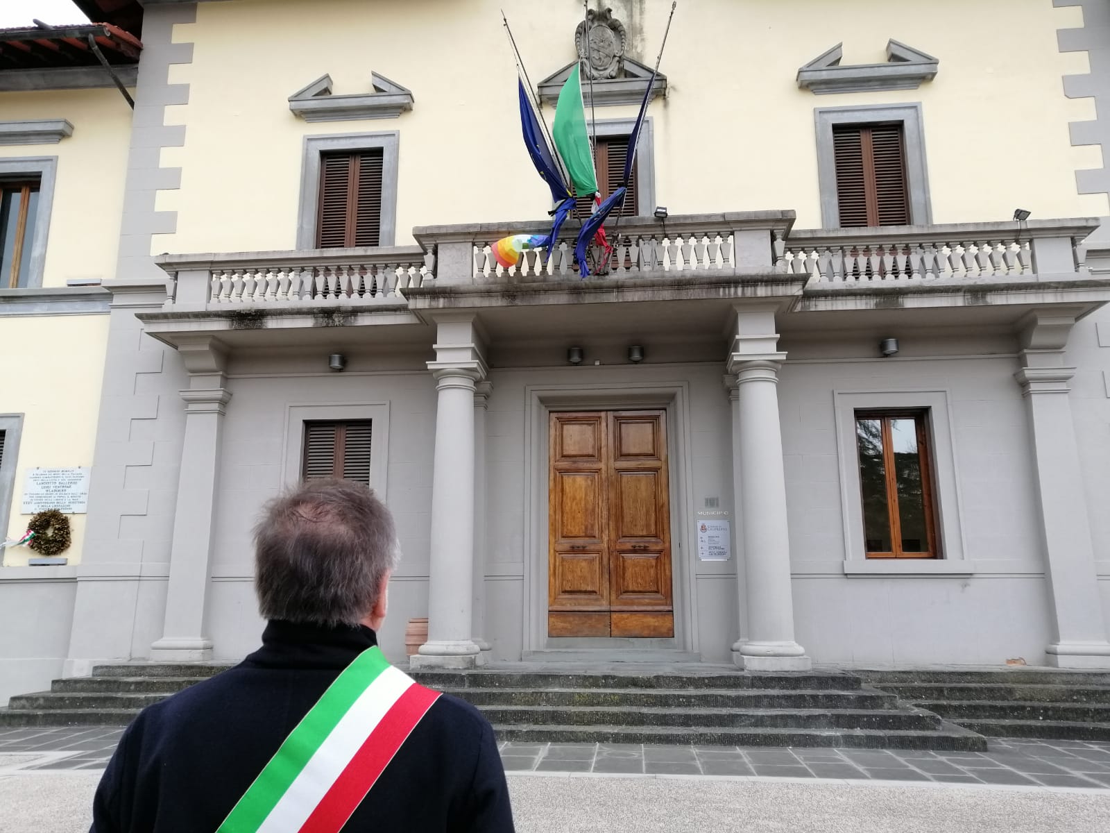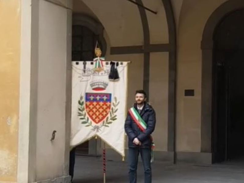 Indossando la fascia tricolore, il sindaco Salvetti ha fatto issare a mezz'asta le bandiere poste sul balcone di Palazzo Comunale ed ha osservato un minuto di silenzio in ricordo delle vittime del Covid-19 e in sostegno dei sanitari impegnati nell'emergenza.