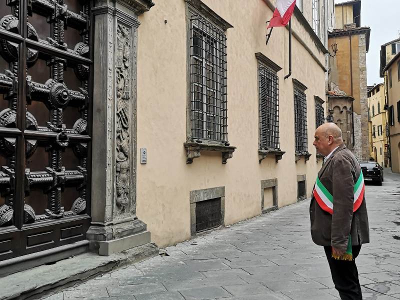 Anche a Lucca un minuto di silenzio per manifestare cordoglio per le vittime della pandemia. L'Italia unita si è stretta nel lutto per le vittime del coronavirus con bandiere a mezz’asta sui palazzi pubblici e un minuto di silenzio che si è tenuto alle 12 in punto. Un simbolo di solidarietà e vicinanza ai familiari di chi non è riuscito a superare l’infezione e di partecipazione nazionale al dolore delle comunità più colpite. L’assessore alla cultura e sport Stefano Ragghianti, a nome di tutta la giunta Comunale, ha osservato il minuto di silenzio davanti alle bandiere abbrunate di Palazzo Orsetti.