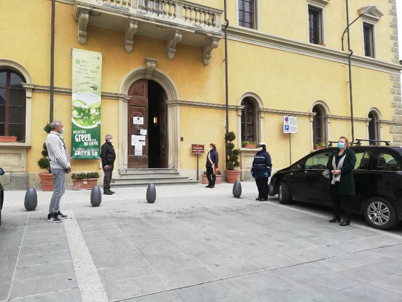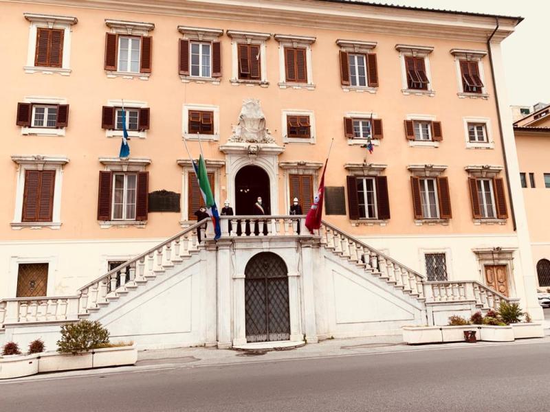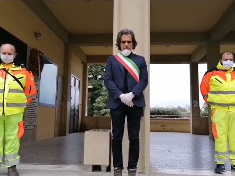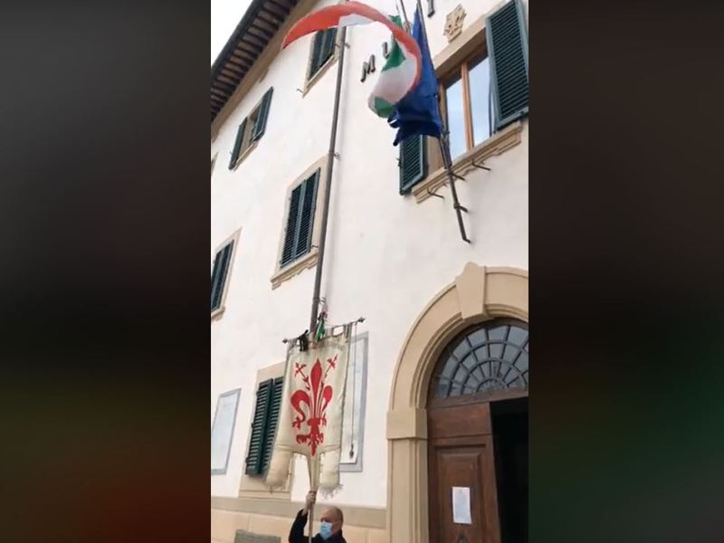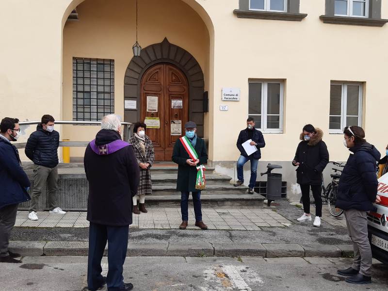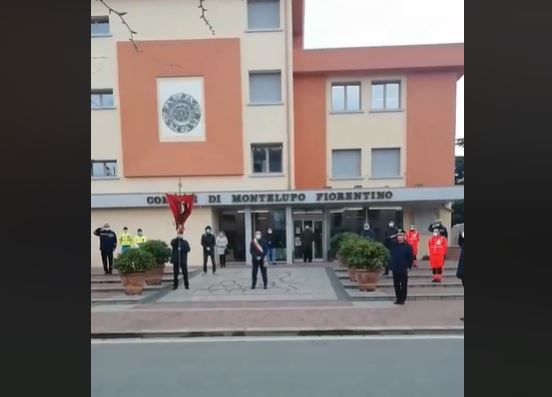 Indossando la fascia tricolore, il sindaco Salvetti ha fatto issare a mezz'asta le bandiere poste sul balcone di Palazzo Comunale ed ha osservato un minuto di silenzio in ricordo delle vittime del Covid-19 e in sostegno dei sanitari impegnati nell'emergenza.