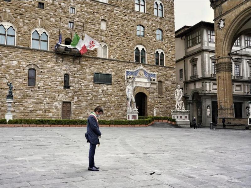 Il tricolore in segno di lutto per le vittime del coronavirus, di vicinanza ai familiari delle vittime, di partecipazione nazionale al cordoglio delle comunità più colpite. Il sindaco di Firenze Dario Nardella (come tutti i primi cittadini della Penisola), con indosso la fascia tricolore, ha osservato davanti a Palazzo Vecchio un minuto di silenzio e con le bandiere esposte a mezz’asta in segno di lutto e di solidarietà per ricordare le vittime del coronavirus, per onorare il sacrificio e l’impegno degli operatori sanitari, per abbracciarci idealmente tutti, per essere di sostegno l’uno all’altro.