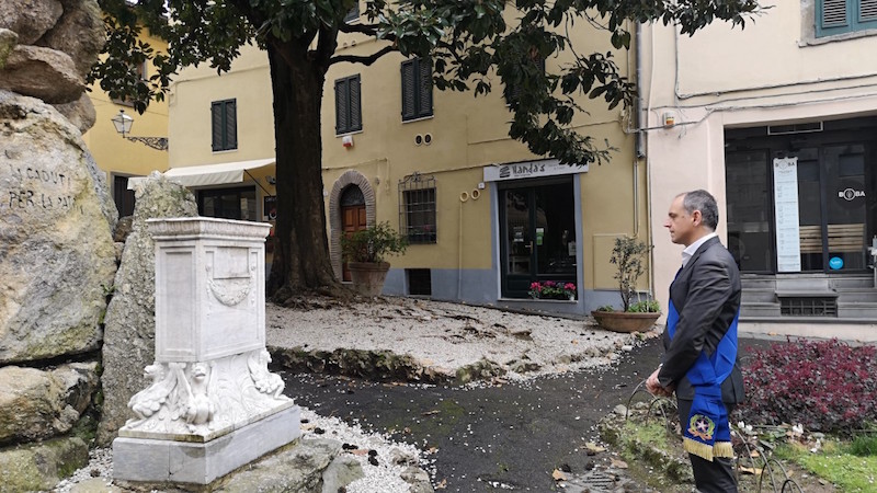 A Capannori il presidente della Provincia di Lucca, Luca Menesini, ha rispettato un minuto di silenzio di fronte al Monumento ai Caduti in piazza XX Settembre, per ricordare tutte le persone venute a mancare a causa del Covid-19.