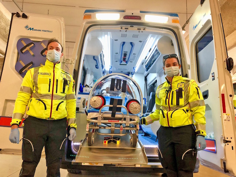 Sul territorio pratese è entrata in funzione la prima ambulanza con letto mobile di rianimazione dotato di ventilatori polmonari, pompe ad infusione e defibrillatore, predisposto per il bio-contenimento ad alta intensità. Questa nuova dotazione permette di trasportare nella massima sicurezza i malati di coronavirus tra i reparti di terapia intensiva della Toscana. A mettere in campo questo nuovo e delicato servizio, garantito h24, è la Misericordia di Prato che ha messo a disposizione del Centro operativo per le maxi emergenze dell’Asl un proprio mezzo allestito dalla Federazione regionale delle Misericordie. Si tratta di uno dei quattro mezzi del genere presenti in Toscana, gli altri sono a Pistoia, Arezzo e Montecalvoli in provincia di Pisa.