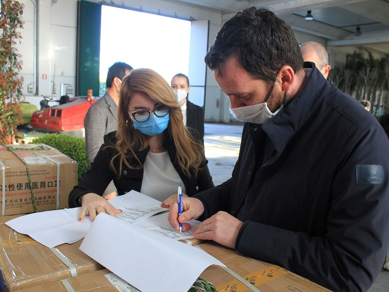 Grazie a Xu Jinhua, Capo Rappresentante del Comitato investimenti e sviluppo della Associazione Cinese delle piccole e medie imprese in Italia, sono state consegnate questo pomeriggio a Fabrizio Tesi – Legale Rappresentante della Giorgio Tesi Group - tramite il proprio incaricato King Li, 90.000 mascherine chirurgiche destinate ad essere distribuite in parti uguali ai sindaci di Firenze, Prato e Pistoia.