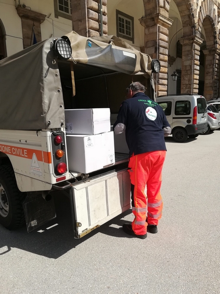 A seguito dell'incremento delle consegne di mascherine monouso messo in atto dalla Regione Toscana dal 23 marzo, ulteriori dispositivi di protezione sono stati assegnati alla Protezione civile della Provincia di Lucca e, dal 23 marzo a ieri (2 aprile), sono state consegnate ulteriori 75mila mascherine messe a disposizione per supportare l'attività delle Forze dell'Ordine e dare una prima parziale risposta al fabbisogno rappresentato da aziende private o organizzazioni onlus che gestiscono sul territorio attività ritenute essenziali (comparto produzione e distribuzione generi alimentari, farmaceutica, ecc).
