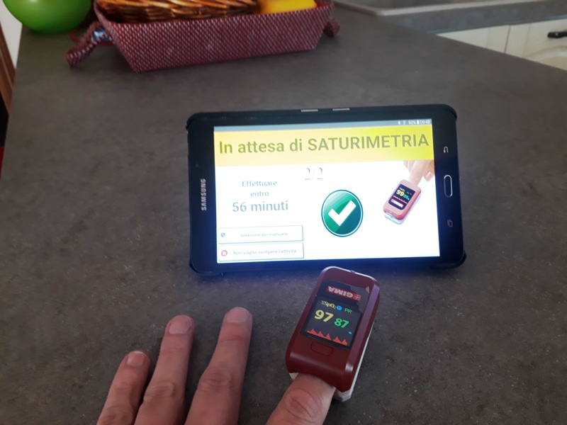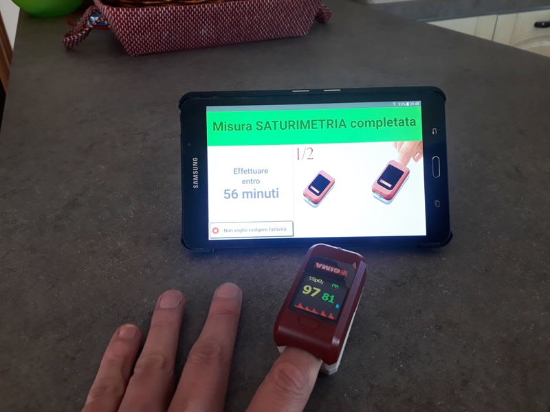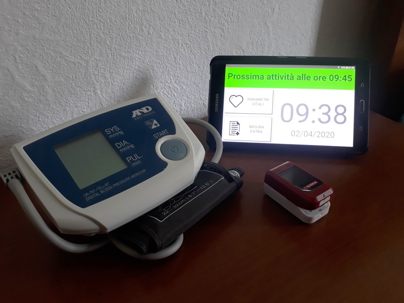 Le persone affette o a rischio Covid-19 che si trovano in isolamento domiciliare vengono dotate di dispositivi come saturimetri, termometri e sfigmomanometri che, grazie ad una applicazione che gira su tablet e ad un sistema di sensori bluetooth, trasmettono i parametri vitali a distanza ed in tempo reale al medico curante, attraverso una piattaforma web.