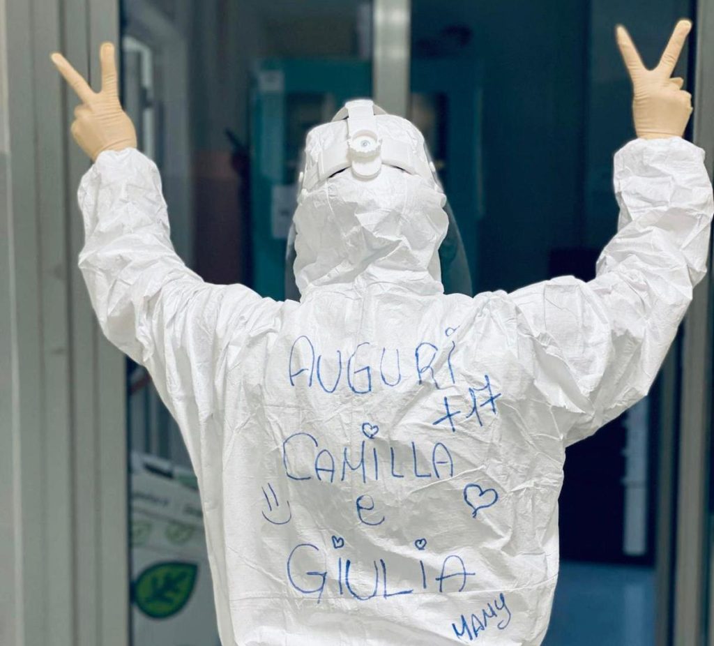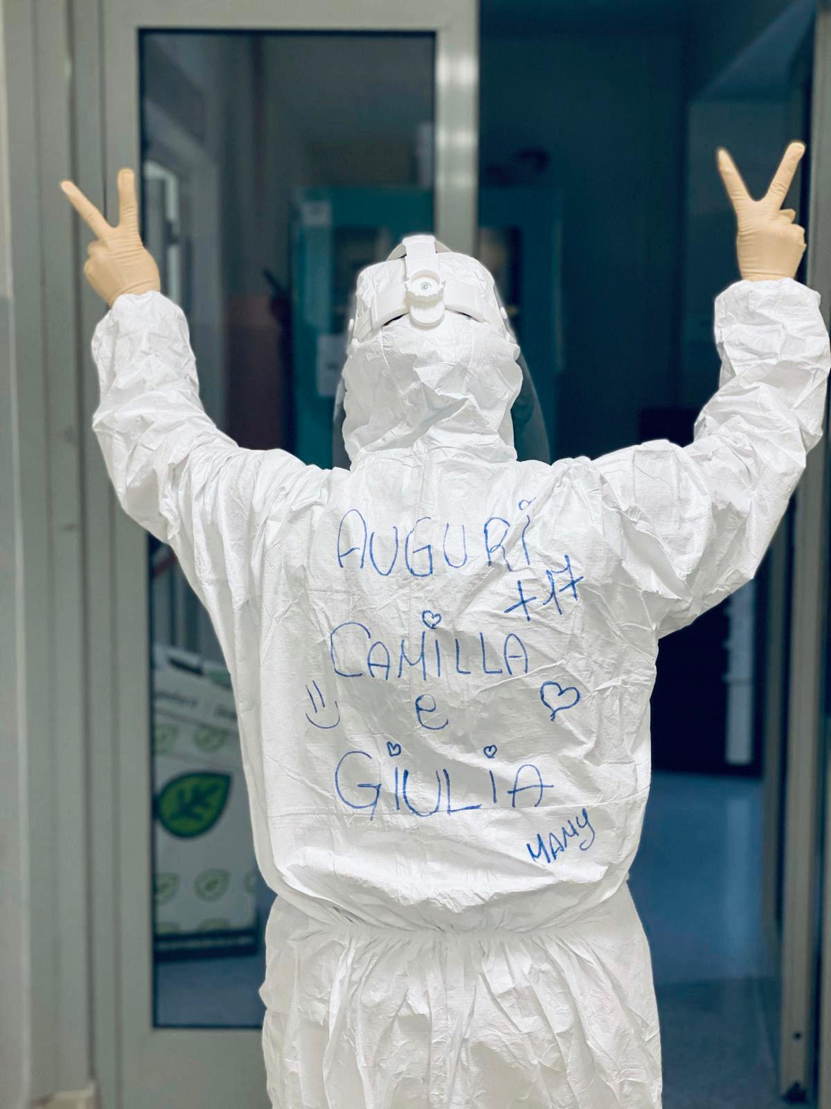 "Auguri Camilla e Giulia. +17". Firmato 'Mamy'. Una mamma speciale, che fa un mestiere speciale: l'infermiera nel reparto di Terapia Intensiva per gli affetti da coronavirus all'ospedale pisano di Cisanello. Le due figlie gemelle di Chiara Carafiglia da San Miniato ci hanno mandato l'omaggio particolare della loro mamma, che ha decorato la divisa anti-contagio con quella scritta, mentre festeggia con il gesto che indica il doppio anniversario ma anche il gesto della vittoria, "ce la faremo". Immaginiamo che non solo oggi, martedì 7 aprile, sia un giorno importante. Sono state e ci saranno ancora settimane di durissimo lavoro in quel reparto dove si combatte come in tutto il mondo il temibile Covid-19. Gli affetti però non potevano mancare. Se oggi è il tempo delle restrizioni, ci sarà tutto il tempo per poter festeggiare in tranquillità, assieme ad amici e parenti, come abbiamo sempre fatto nelle occasioni importanti.