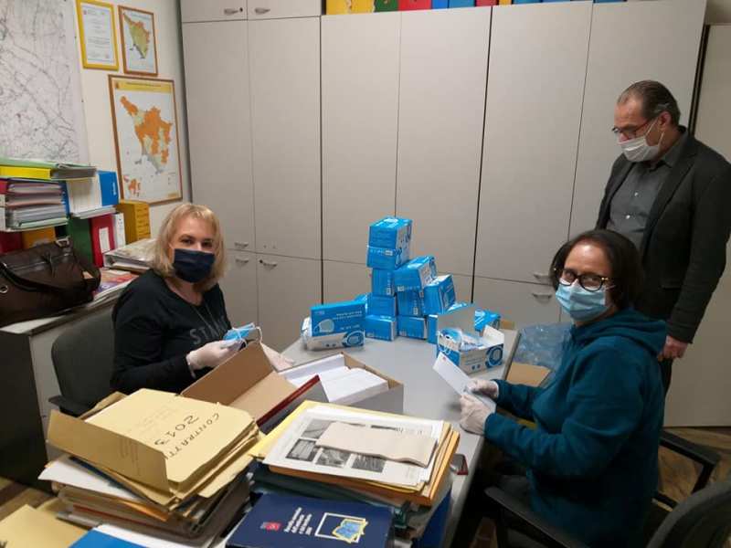 Oggi pomeriggio alle 15.00 inizia a Quarrata la distribuzione delle mascherine casa per casa. Intanto, stamattina, il personale dell'Ufficio Tecnico e di altri uffici sono a lavoro per imbustarle. La Regione ne ha assegnate 60.000 a Quarrata, quindi ne spetteranno due a testa, che saranno consegnate in ogni abitazione dalle associazioni del soccorso (Vab, Misericordia e Croce Rossa) coordinate dalla Protezione civile comunale. Le rimanenti saranno distribuite in parte agli utenti dell'Emporio Sociale e in parte al personale coordinato dalla Protezione civile impegnato nella gestione dell'emergenza Covid19.