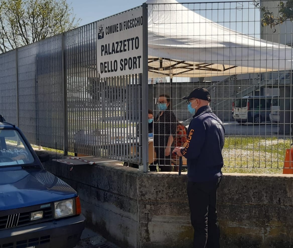 Si entra e si esce con l‘auto dopo aver ritirato i propri buoni spesa. Il piazzale del palazzetto dello sport di Fucecchio da ieri è stato trasformato in una sorta di drive-in sociale dal Comune di Fucecchio che utilizza questo spazio per consegnare i buoni spesa ai cittadini che ne hanno diritto. Il tutto sotto l’attenta sorveglianza delle forze dell’ordine, a tutela della sicurezza dei cittadini e degli operatori.
