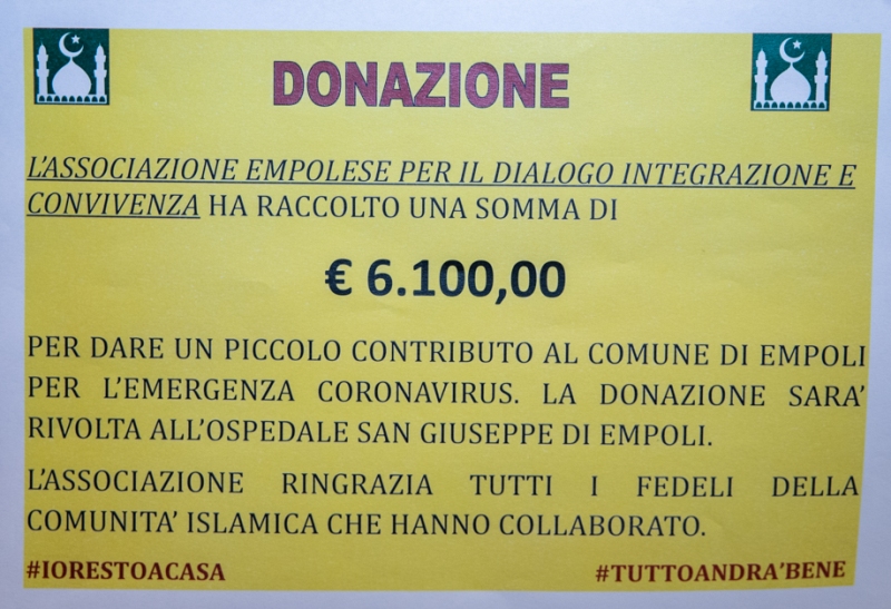 «Da oltre un mese stiamo raccogliendo ciò che possiamo nelle oltre cento famiglie che fanno parte della nostra comunità. Siamo in particolare cittadini italiani con origini marocchine, pakistane, senegalesi. Vogliamo essere vicini al presidio ospedaliero e a tutte le professionalità che lavorano all’interno per superare questa emergenza sanitaria. Ecco perché abbiamo deciso di devolvere questa cifra all’ospedale di Empoli».