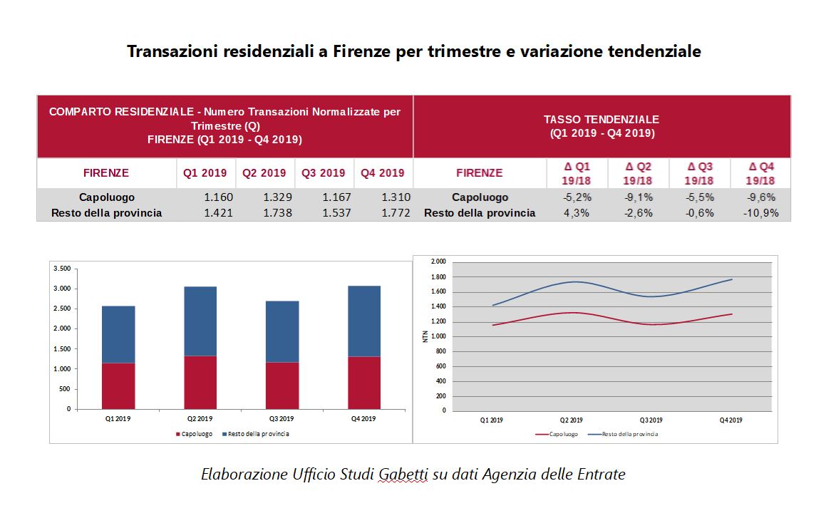 Il numero di transazione nel capoluogo toscano è stato di 4.966, nel 2019, dato in diminuzione (-7,5%) rispetto al 2018, ma comunque in crescita rispetto al 2011 (+8%)