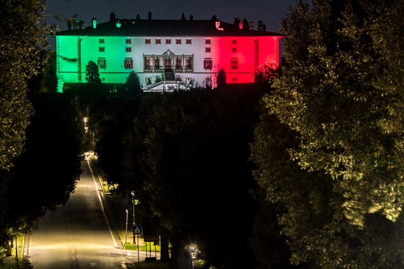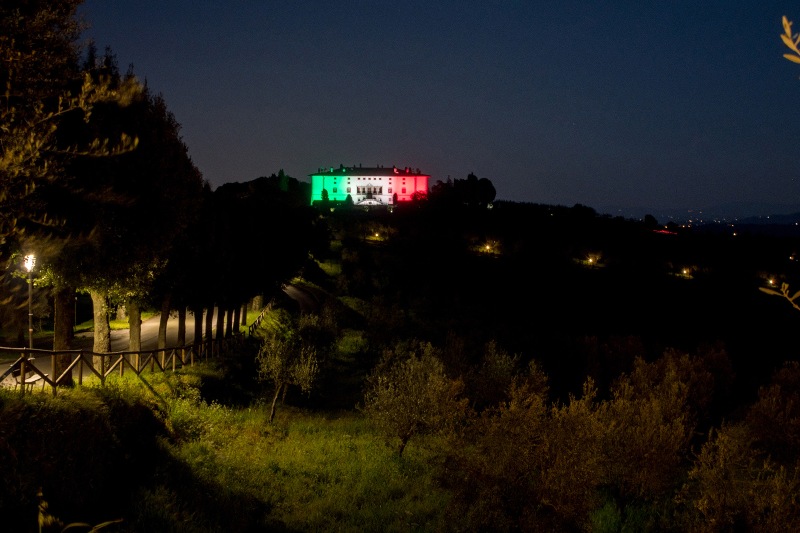Villa Medicea La Ferdinanda della Tenuta di Artimino si illumina con i colori della bandiera italiana. L’imponente facciata della Villa è stata illuminata con il tricolore in segno di unità e forza in questo momento così difficile per il nostro Paese. L’iniziativa è stata lanciata dalla famiglia Olmo, proprietaria di Tenuta di Artimino, in occasione della Pasqua.