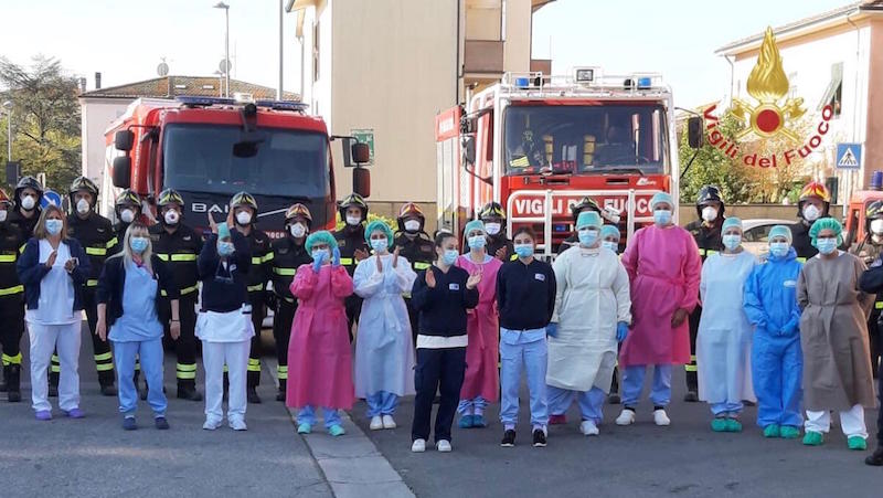 Personale dei distaccamenti di Cascina Ponsacco Pontedera e Lari a nome di tutto il Comando si sono recati questa mattina presso l'ospedale Lotti di Pontedera per portare un messaggio di vicinanza a tutti gli operatori che a vario titolo stanno prodigandosi per curare i malati colpiti dal virus. Un semplice schieramento dei mezzi, il suono della sirena e un grosso applauso alla presenza della Direttrice Sanitaria dr.sa Sanguinetti, col personale che ha potuto osservare dalle finestre dei reparti destinati ai malati di Covid-19: "Un segno di vicinanza che va oltre i rapporti istituzionali. Ancora un grazie per la missione che state svolgendo".
