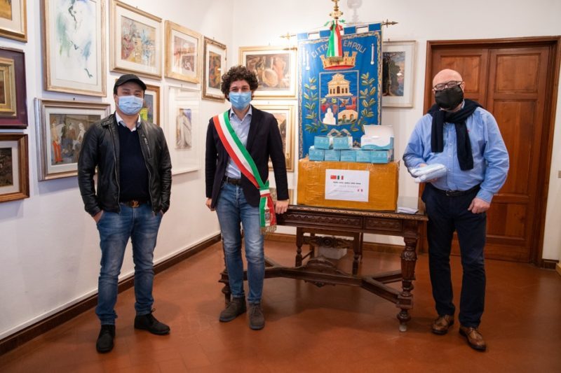 La donazione è stata accolta in municipio dal vicesindaco Fabio Barsottini e dall’assessore alla protezione civile Massimo Marconcini che hanno ringraziato l’imprenditore cinese.