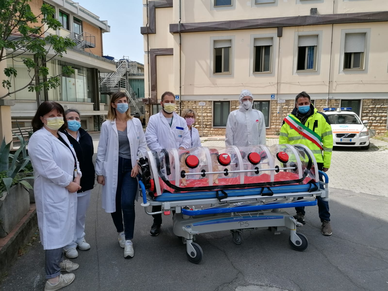 La barella permetterà un trasporto in sicurezza del paziente Covid-19 positivo all'interno dell'ospedale ed un miglioramento dell'efficacia dei percorsi dedicati al paziente con infezione.