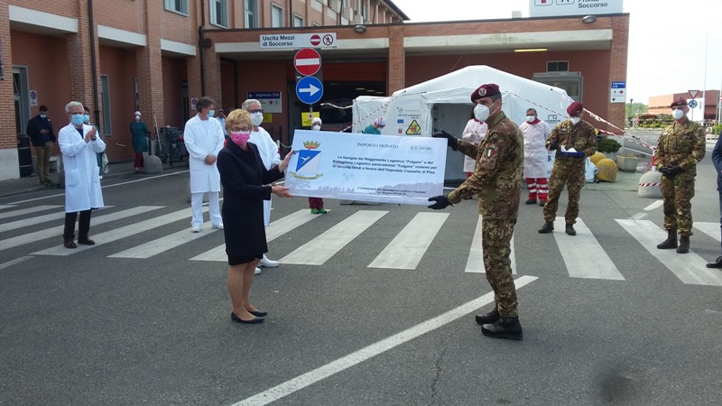 Una delegazione del Reggimento logistico “Folgore” guidata dal comandante, il colonnello Salvatore Pisciotta, ha consegnato simbolicamente al direttore generale dell’Aoup Silvia Briani un assegno di 8.741,00 euro a favore dell’ospedale, raccolti dalle famiglie dei militari del Reggimento logistico e del Battaglione logistico paracadutisti “Folgore” e che verranno donati tramite bonifico all’Iban appositamente istituito dall’Aoup per l’emergenza Covid-19. “Per noi - ha dichiarato il colonnello Pisciotta – è un modo per manifestare la nostra vicinanza a questa città, a cui sentiamo di appartenere, pur venendo molti di noi da fuori, e al suo ospedale. Grazie quindi per quanto fate quotidianamente e grazie anche dalle famiglie dei militari in pensione che hanno voluto ugualmente testimoniare la loro gratitudine, a riprova del legame forte della Folgore con questa città e le sue istituzioni”.