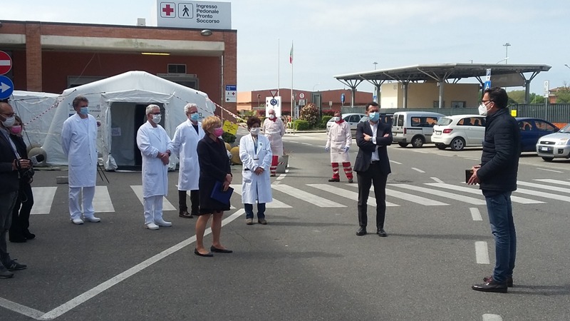 In un contesto di numero di ricoveri che anche a Pisa sta gradualmente diminuendo – attualmente sono un centinaio i posti letto occupati da pazienti affetti dal Covid-19 (di cui una ventina in terapia intensiva) – gli staff sanitari di tutte le strutture in prima linea sul fronte dell’emergenza hanno voluto accogliere l’omaggio delle autorità davanti alla tenda pre-triage allestita davanti al Pronto soccorso.