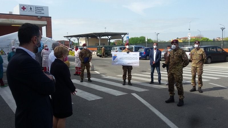 Una delegazione del Reggimento logistico “Folgore” guidata dal comandante, il colonnello Salvatore Pisciotta, ha consegnato simbolicamente al direttore generale dell’Aoup Silvia Briani un assegno di 8.741,00 euro a favore dell’ospedale, raccolti dalle famiglie dei militari del Reggimento logistico e del Battaglione logistico paracadutisti “Folgore” e che verranno donati tramite bonifico all’Iban appositamente istituito dall’Aoup per l’emergenza Covid-19. “Per noi - ha dichiarato il colonnello Pisciotta – è un modo per manifestare la nostra vicinanza a questa città, a cui sentiamo di appartenere, pur venendo molti di noi da fuori, e al suo ospedale. Grazie quindi per quanto fate quotidianamente e grazie anche dalle famiglie dei militari in pensione che hanno voluto ugualmente testimoniare la loro gratitudine, a riprova del legame forte della Folgore con questa città e le sue istituzioni”.