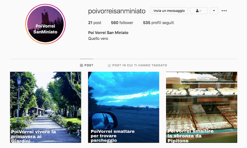 Anche a Empoli e San Miniato dilaga su Instagram la moda del 'Poi vorrei'. Sono nati alcuni profili sul social network in cui gli utenti - perlopiù dell'Empolese Valdelsa e della Zona del Cuoio - scrivono le cose che più mancano in questo isolamento da Coronavirus. Le foto sono molto semplici ma dicono tantissimo: sfondo monocolore, frase in primo piano e qualche emozione che risale la pelle.