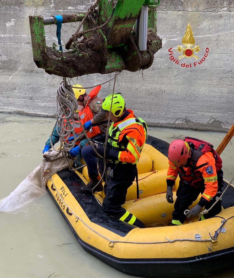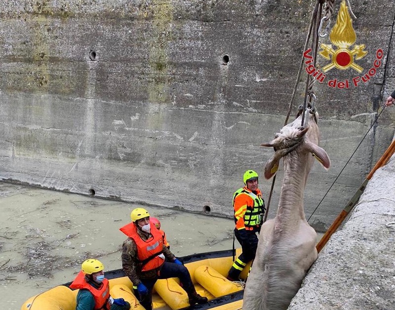 I vigili del fuoco, con il supporto di specialisti Spello alpinistico fluviale SAF, sono intervenuti ieri nel Lago di Santa Luce per soccorrere un piccolo vitello. L’animale era caduto all’interno della chiusa del lago di Santa Luce ed era in difficoltà. Il personale dei vigili del fuoco con un gommone, insieme a un veterinario, hanno raggiunto il vitellino che dopo essere stato sedato è stato recuperato e portato a terra in buone condizioni, anche se spaventato.