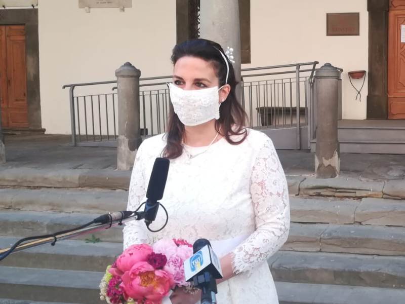 La sposa ha ribadito: "Non avremmo rinunciato al matrimonio per niente, ci sarà modo di fare la cerimonia, l'importante era sposarsi. La mascherina è un regalo di una signora che l'ha fatto a mano per me e per Gabriele, il vestito è arrivato online in Inghilterra. Ho dovuto ordinarlo da un sito per farmelo arrivare da Londra".