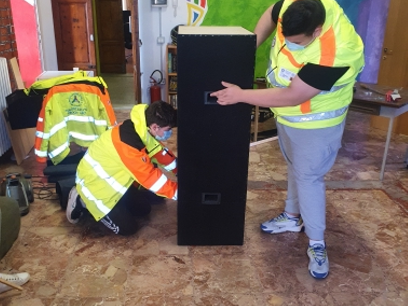I ragazzi hanno come primo obiettivo quello di seguire il percorso didattico a distanza poiché la scuola è la loro occupazione primaria, finite lezioni ondine, compiti ed interrogazioni, arrivano di corsa in sede per iniziare i propri turni impegnandosi nei compiti assegnati: c’è chi va fuori per le consegne, chi trascrive tutti gli interventi della giornata, chi sanifica i locali della sede, sanno che tutto è importante e si gettano anima e corpo per garantire l’efficienza giornaliera della protezione civile, e spesso dopo cena continuano con le attività non concluse nel pomeriggio, per far si che il giorno seguente i volontari più grandi (i ragazzi la mattina devono pensare alla scuola) possano trovare una sede sistemata con fogli servizio pronte, schede intervento e quanto serve alla partenza del nuovo turno di servizi.