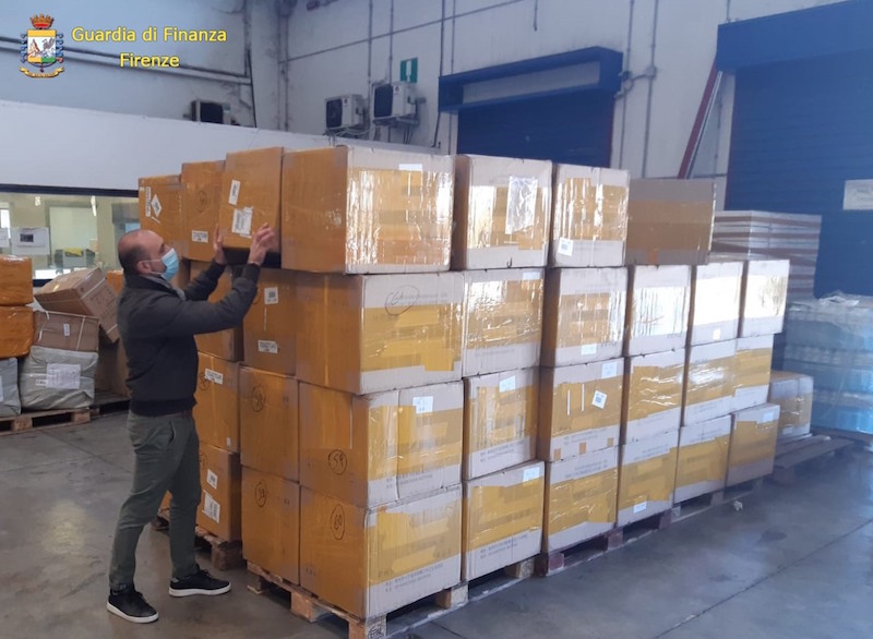 La guardia di finanza di Firenze ha sequestrato circa 7.200 kit anti Covid-19, oltre 300mila dispositivi di protezione individuale e 1,7 milioni di mascherine. Nel corso di più operazioni i finanzieri hanno operato sia sulla Città Metropolitana di Firenze sia nella provincia di Prato. Tutti i dispositivi erano privi di certificazione o della scheda tecnica sulla sulla conformità ai requisiti di sicurezza previsti dalle disposizioni vigenti. Inoltre erano destinati all'immissione sul territorio attraverso circuiti in prevalenza operanti in ambiti non regolari.