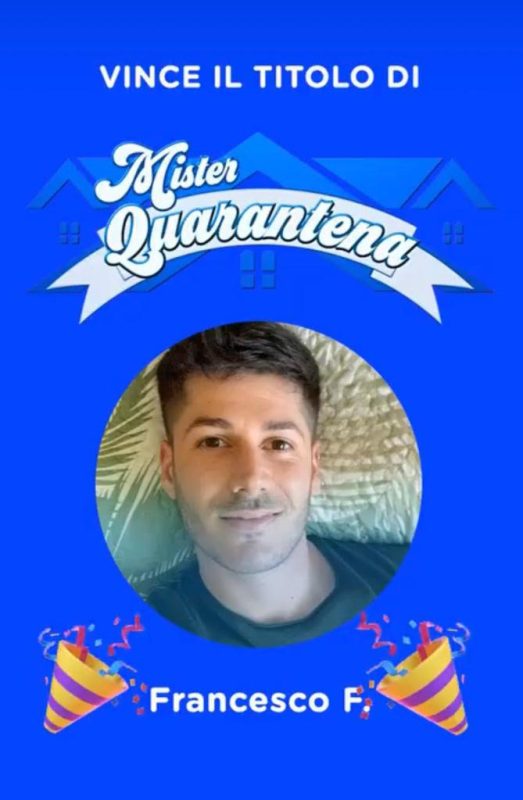 Nella finalissima di Mister Quarantena Francesco, per gli amici Fiorello, ha ottenuto circa il 65% dei voti espressi da chi ha seguito il concorso tramite Instagram, votando ad ogni puntata, a dimostrazione del largo consenso ottenuto.