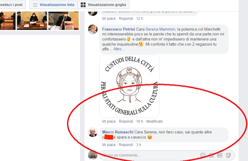 «L’assessore regionale all’agricoltura Marco Remaschi sulla mia bacheca Facebook personale scrive, in commento al post di una assessore comunale di Lucca, “sai quante cazzate spara a casaccio” rivolto a me. A me sulla mia bacheca».