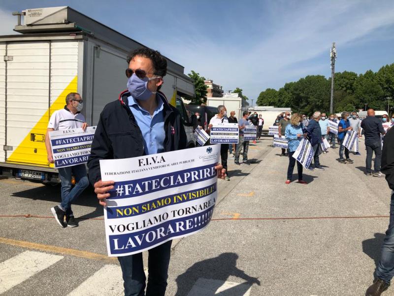 “E' necessario restituire dignità ad una categoria di imprenditori già in sofferenza, duemila aziende di cui 700 si stanno interrogando se ci sono le condizioni di poter riprendere l'attività” - la dichiarazione della presidente di Confcommercio Federica Grassini: “ambulanti completamente dimenticati, in maniera ingiustificata, irrazionale e illogica, una categoria che lavora all'aperto e che più di ogni altra ha la possibilità di garantire lo stanziamento necessario. Molti di loro non sono qui oggi con i loro furgoni perché non hanno avuto aiuti dallo Stato e tra scegliere di mangiare o pagare bollo e assicurazione, hanno giustamente scelto la prima. Noi imprenditori siamo alla fame, e contrariamente a quanto accade in altri paesi europei, dove sono stati stanziati immediati e aiuti a fondo perduto, per garantire la sopravvivenza fino al momento della ripresa, non si giustifica che il Governo italiano non abbia fatto differenziazione tra territori che hanno avuto situazioni emergenziali completamente diverse, e ad oggi non abbiamo indicazioni certe nemmeno per le modalità con le quali ci ritroveremo a riaprire”.