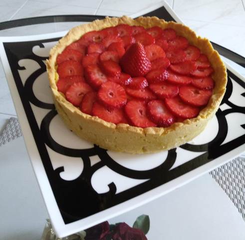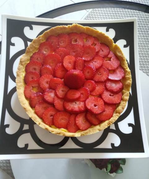 Marco è molto bravo in cucina e ha fatto un ottimo dolce con crema pasticcera e lo ha decorato con le fragole. Le foto mi sono state gentilmente concesse da Marco.