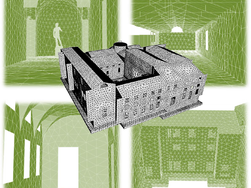 Il progetto ha come priorità la tutela del Patrimonio architettonico e artistico del Museo attraverso il supporto delle più avanzate tecnologie di rilievo geomatico e di diagnostica. Focus dell’attività di ricerca è la salvaguardia dell’edificio e delle collezioni dal rischio indotto da attività antropiche o da eventi estremi come quelli sismici. Durante la ricerca saranno sviluppati alcuni modelli: il H-BIM (Heritage Building Information Modeling), pioneristica applicazione in Italia di uno strumento di supporto a servizio del museo, rivolto a una più efficiente gestione della manutenzione e conservazione, nonché a un’ottimale organizzazione degli interventi e dei cantieri in programma; i modelli numerici per lo studio e la rappresentazione del comportamento dei singoli elementi architettonici e artistici rispetto a diversi fattori di rischio.