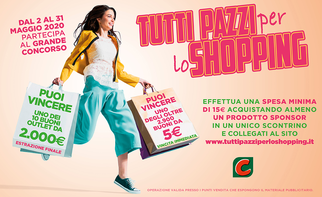 Partecipare è semplice: basta effettuare una spesa minima di 15€ acquistando almeno un prodotto sponsor[2] in un unico scontrino. Grazie alla nuova modalità “Cancella&Vinci” introdotta in una cartolina consegnata direttamente in cassa, sarà possibile scoprire nell’immediato l’eventuale vincita di uno dei 2.964 buoni spesa da 5€ (da convalidare successivamente tramite registrazione sul sito del concorso www.tuttipazziperloshopping.it). Ma non è finita qui: la registrazione online – da effettuare, per chi lo desidera, non solo a seguito della vincita dei buoni spesa – permetterà a chiunque di partecipare all’estrazione dei 10 super premi finali: buoni outlet da 2.000€ ciascuno, con un espertopersonal shopper a propria disposizione.