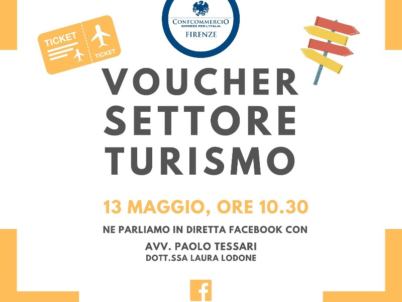 Domani (mercoledì 13 maggio) alle ore 10.30 la Confcommercio della provincia di Firenze dedica sulla propria pagina Facebook un appuntamento in diretta rivolto ai titolari di strutture ricettive, tour operator, vettori e agenzie di viaggio per parlare del voucher “salva- vacanza”, il nuovo provvedimento adottato dal Governo italiano per aiutare le imprese del turismo a fronteggiare la situazione di emergenza connessa all’epidemia Covid-19.