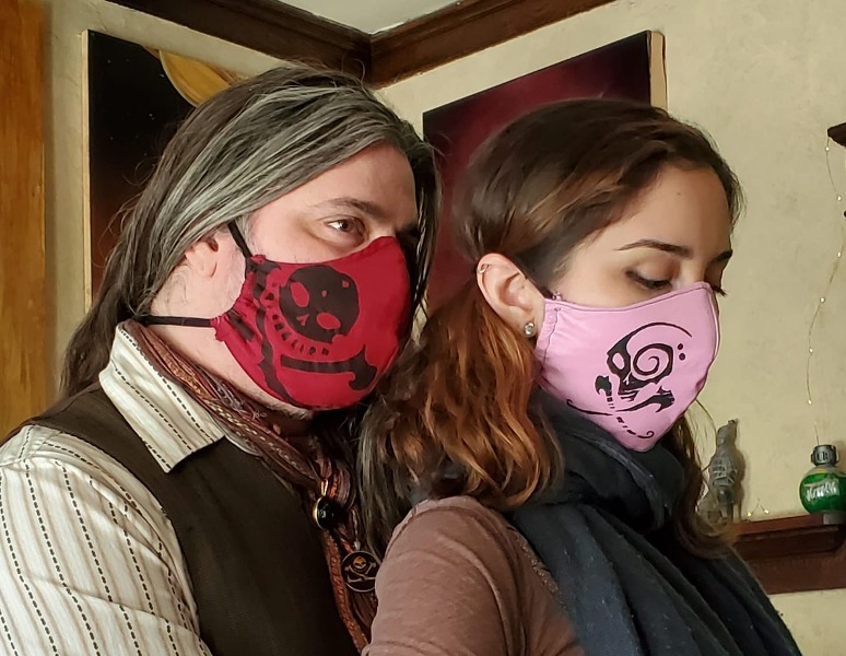 Tutto inizia nel 2017, quando Nigel e Sarah partecipano a Lucca Comics&Games, prendendo parte attivamente alle attività dell’Area Performance, la "artist playground" di Lucca Games che da oltre vent'anni celebra l’imaginative realism e le arti visive nella loro pluralità. Tornano anche nel 2019 e proprio in quell’anno decidono di realizzare a Lucca il sogno di sempre: vivere in Italia. L’arrivo del Covid-19 li costringe a rientrare in Ohio, dove stanno trascorrendo la quarantena, ma il legame con la loro città adottiva non si ferma. Ed è così che Sarah si inventa un modo per trasformare la propria arte in solidarietà in favore di Lucca: ecco che le bandane da loro illustrate diventano mascherine lavabili, grazie alla collaborazione con un gruppo di sarte che sta aiutando i due artisti a soddisfare le tante richieste ricevute. A Lucca la solidarietà si allarga e coinvolge anche Elena Giuli, una cittadina lucchese, appassionata di sartoria, che ha confezionato le mascherine che saranno distribuite, tramite Ex-Plus, ai cittadini che le richiedono dopo aver effettuato la donazione su Eppela.