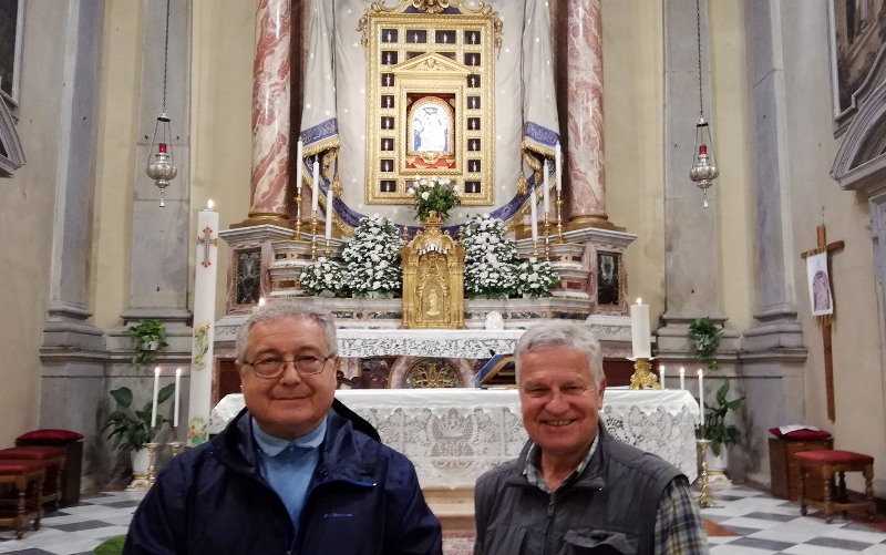 Monsignor Nerbini è un camminatore, ama le Dolomiti ed è solito ogni mattina alle prime luci dell’alba percorrere la pista ciclabile lungo il Bisenzio passeggiando e pregando. Proprio come ha fatto questo fine settimana, ma per svolgere un percorso ben più impegnativo. Con lui, che non ha mai fatto il percorso da Prato a Boccadirio, c’era Piero Doni, 74 anni, esperto della zona e veterano del tradizionale pellegrinaggio dell’Azione Cattolica diocesana che si tiene ogni anno dalla cappella del Sacro Cingolo al santuario bolognese dedicato alla Beata Vergine delle Grazie. A causa del Covid l’edizione 2020, programmata proprio questo fine settimana, non si è tenuta e così ci ha pensato il Vescovo a mettersi in cammino per conto e in nome della Chiesa pratese.